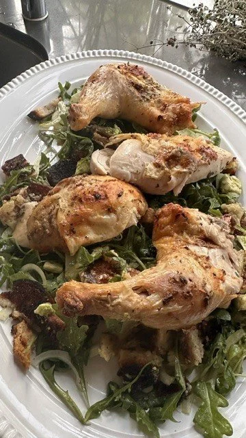 Oregano Butter Roast Chicken with Crispy Sourdough and The Best Salad Ever
